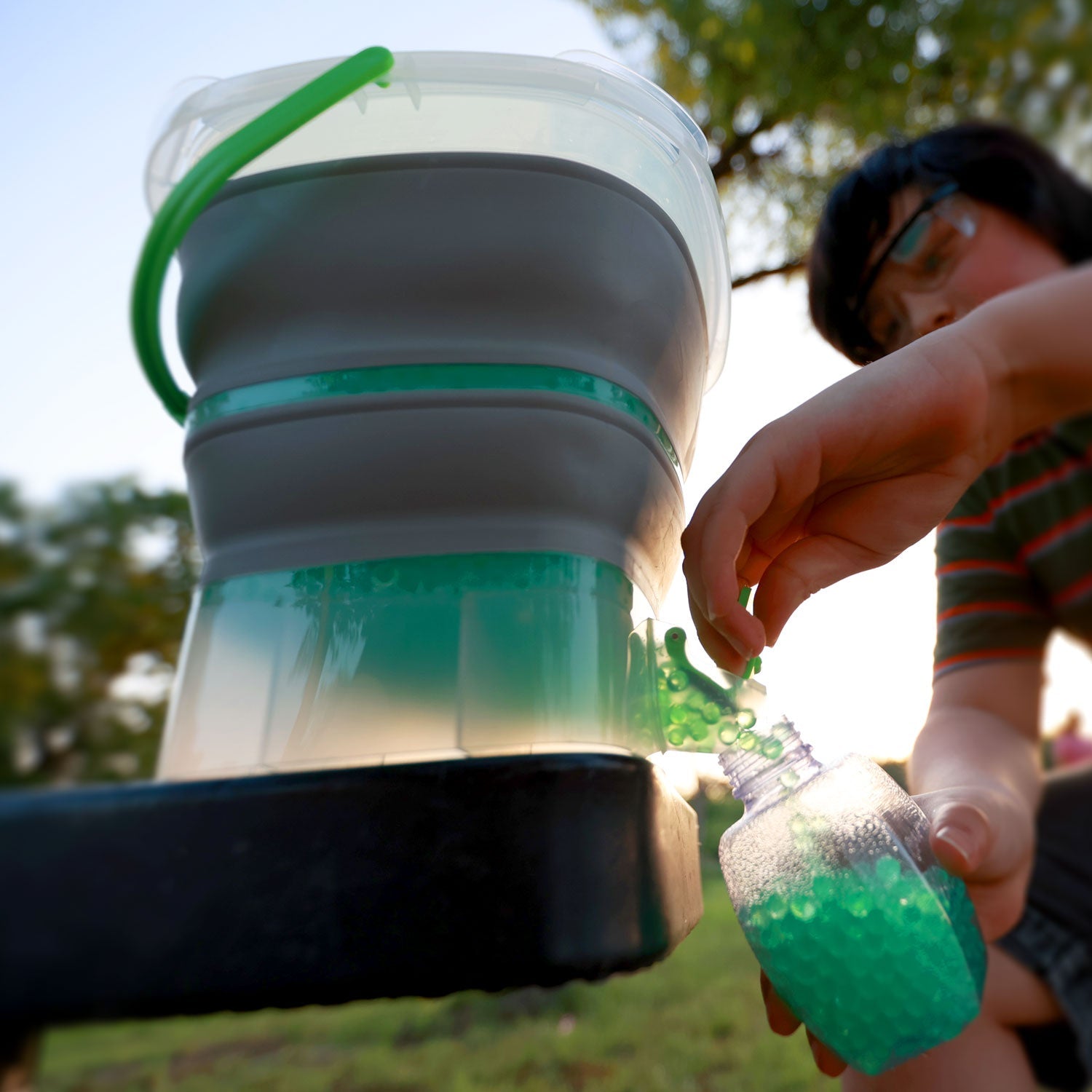 Gellet® Depot acts as your home base for reloading and jumping back into the battle. Gellets® last indefinitely when dehydrated, and up to three months when submerged in water. Gel Blaster Gellet Depot expands 10x their size when fully hydrated. When you're ready to play, use the built-in strainer to remove excess water and you're back in the action!